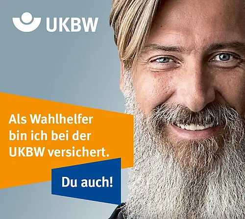 Das UKBW-Erklärvideo und weitere Informationen zum Versicherungsschutz von ehrenamtlichen Wahlhelferinnen und Wahlhelfer finden Sie hier: www.ukbw.de/wahlhelfende.