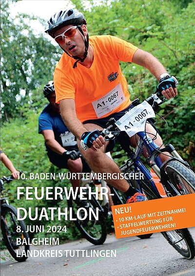 Am 8. Juni ist es endlich soweit: Jung und Alt gehen in Balgheim im Landkreis Tuttlingen an den Start, um beim 10. Baden-Württembergischen Feuerwehr-Duathlon teilzunehmen. Insgesamt wird eine 5km Lauf- und eine 20km Radstrecke absolviert. Natürlich können auch dieses Mal wieder die Kinder der Feuerwehrangehörigen sowie Mitglieder von Kindergruppen in der Jugendfeuerwehr an den Start gehen. Erstmalig in diesem Jahr wird im Rahmen des Duathlons zudem ein Staffellauf der Jugendfeuerwehren angeboten. Weitere Informationen gibt es im Flyer.