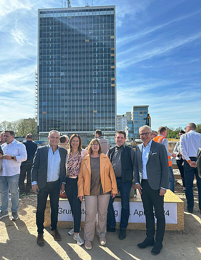 Mit der Grundsteinlegung haben am Freitag, 12. April, die Bauarbeiten für das neue Hochhaus des Landratsamts in Karlsruhe begonnen. Auch die UKBW wird nach Fertigstellung des dann höchsten Holz-Hochhauses in Baden-Württemberg mit ihrem zentralen Weiterbildungsträger, der UKBW Akademie, dort einziehen. Der klimaneutral errichtete Bau, der auf ca. 63.000 m² Bruttogeschossfläche auch eine Kita und ein Bäckerei-Café beheimaten wird, bietet eine optimale Umgebung für die Bildungsinitiativen der UKBW. Für Versicherte sind die Seminare und Workshops zu Themen des Arbeits- u. Gesundheitsschutzes kostenfrei.