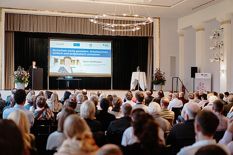 Die UKBW-Geschäftsführerin Tanja Hund eröffnete die Veranstaltung mit einem richtungsweisenden Impuls: „Arbeitsunfälle sind weiter rückläufig – unsere Prävention wirkt. Doch die immer komplexere Arbeitswelt verlangt gleichzeitig nach flexiblen und mutigen Ansätzen. Genau hier setzt moderner Arbeitsschutz an – als gelebte Führungshaltung und strategischer Erfolgsfaktor für eine effektive und moderne Verwaltung. Pragmatischer Arbeitsschutz stiftet betriebs- und volkswirtschaftlichen Mehrwert. Dort wo Menschen sicher und gesund arbeiten, entsteht Leistung.“